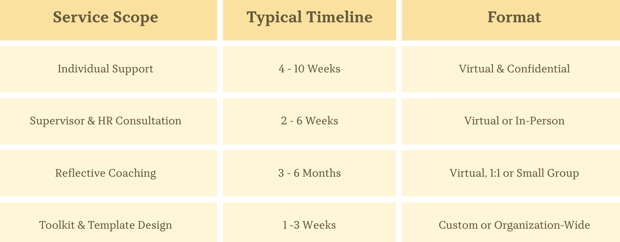 If you’re navigating complexity in your role or team, I’m here to help you move forward—with structure, strategy, and support.
